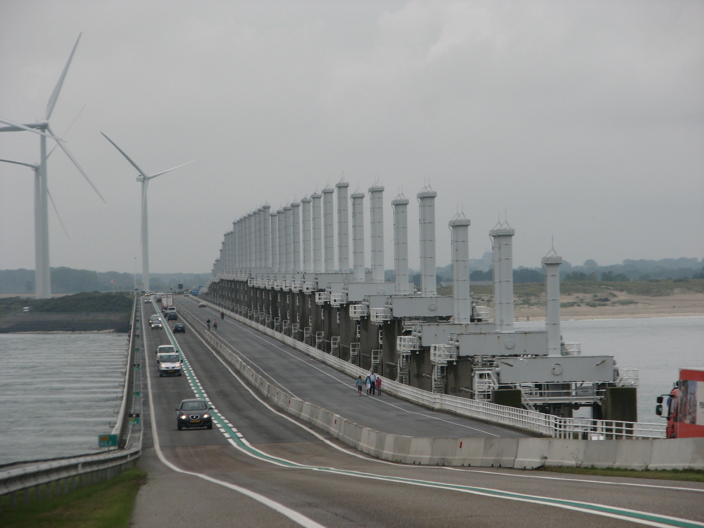 Today we cycled across the isles of Zeeland and got a close look at the Delta works. After the flood of 1953 the Dutch started in their fight against the ocean and started by raising the dikes along the sea arms. Eventually they decided to go a step further to close off some of these arms, without losing the fishing industry and in such started the Delta works. We got a close look at this marvelous engineering work of pillars and gates with which they can control the forces of the ocean. We finished our ride in Delft.